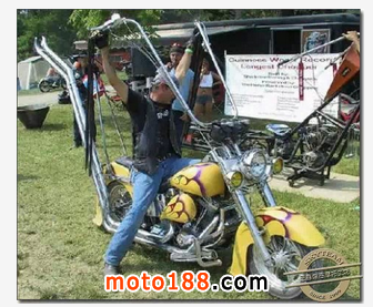 核心提示: 相信大家一定看過這種高高車把的摩托,因為其特殊的騎姿,只看一眼,便難以忘卻。 在美國,這種高高的車把英文叫做Ape Hang