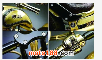 據英國媒體日前報道,據了解,該款摩托車由丹麥著名的摩托制造公司Lauge Jensen打造。特別是整車24K鍍金的設計,令人大開眼界。該款摩托車由一輛時速可達250km/h的哈雷摩托改裝而成。另外,268顆鉆石的鑲嵌也令該摩托車身價倍增。另外,先前世界最貴的摩托車為道奇戰斧V10超級摩托車,其價格達到60萬美元(約合人民幣365.5萬元)。