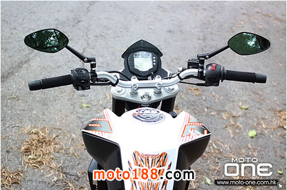 ●(左1)KTM POWERPARTS的拉花貼紙上有蝎子排氣管等等的商標,賽車感更強烈。