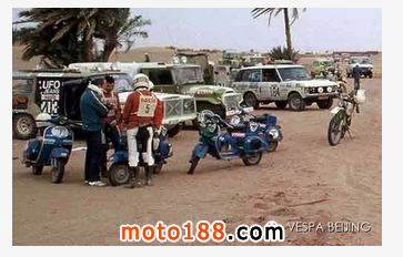 那你就大錯(cuò)特錯(cuò)了。在1980年的達(dá)喀爾賽場(chǎng)上,有這樣一群“瘋子”,騎著踏板摩托Vespa沖向了達(dá)喀爾的沙漠。