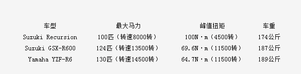與川崎H2/H2R的機(jī)械增壓不同,鈴木采用了汽車發(fā)動(dòng)機(jī)中更為普遍的渦輪增壓,其發(fā)動(dòng)機(jī)采用588c.c.的兩缸水冷發(fā)動(dòng)機(jī),并配備中冷渦輪增壓器。最大馬力100匹(轉(zhuǎn)速8000轉(zhuǎn)),峰值扭矩為100N·m(4500轉(zhuǎn)),整車凈重為174公斤。