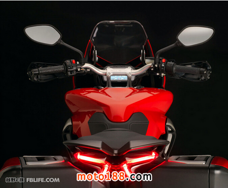 路人皆知,新車的直三800引擎,早已出現在F3 800、Brutale 800和Rivale 800身上。現在第四次來到MV首次踏足的巡航地帶。正因如此,新車也比F3和Brutale更有新鮮感。在未詳細介紹新車細節時,請各位先看一看它的車尾,是何等纖細。副車架的寬度差不多等于車尾的闊度,又高又窄的車尾,是為了把兩個側箱盡量貼近,放在座位之下,好讓車尾寬度盡量減少。為何要讓一對側箱盡量貼近?因為停車和穿插一直都是有側箱摩托車的弱項。尤是是后加的側箱,連同支架向橫發展,阻風阻地又破壞操控,簡直是災難。即使原廠車有側箱,放落頭盔的車身總寬度,例如GTR1400或K1600GT,寬度都會有1000mm。