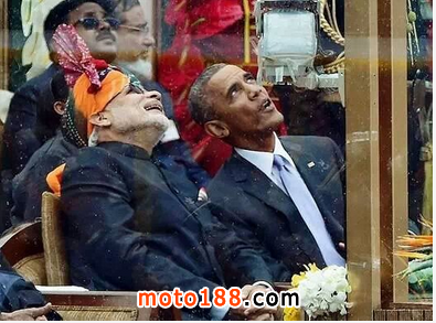 檢閱過程長約兩小時(shí),印度觀眾通過被雨水打濕的電視畫面,看到奧巴馬與坐在身邊的莫迪頻繁交流。莫迪逐一向奧巴馬介紹游行隊(duì)伍中印度各邦的特色及花車的象征意義,當(dāng)看到象征“印度制造”的齒輪雄獅花車駛來,青年學(xué)生表演集體舞時(shí),奧巴馬微笑表示贊許。在看到摩托車隊(duì)特技表演時(shí),他還豎起了大拇指。在《印度時(shí)報(bào)》事后歸納的本次共和國日檢閱10大亮點(diǎn)中,奧巴馬一邊嚼著口香糖一邊聽莫迪講解的一幕被歸入其中,認(rèn)為這體現(xiàn)了美印兩國首腦的關(guān)系已達(dá)到“不拘小節(jié)”的地步。