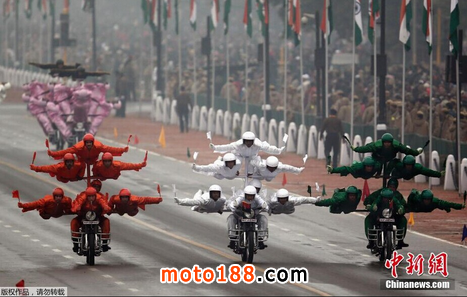 【印度閱兵:一輛摩托車坐7個人 首現(xiàn)女兵方陣】今天,印度在新德里舉行閱兵,慶祝共和國日。美國總統(tǒng)奧巴馬應(yīng)邀出席。今年閱兵式的主題是“女性力量”,女兵方陣首次在閱兵亮相。還有摩托車方隊,一輛摩托車至少坐7個人,奧巴馬看后豎起大拇指。此外,印度還展示了先進(jìn)武器。