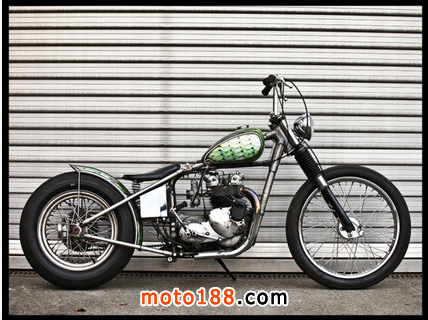 盡管從名字和作品的外觀看來,Hawgholic Motorcycles的總部設立在東京,其專注于將復古的哈雷摩托打造為特別的創造物的地方。這是一臺1945年產的Knuckle chopper,充滿活力的亮黃色的漆色,四排氣管和一個改良的倒U形靠背。它于2011年被重新打造。