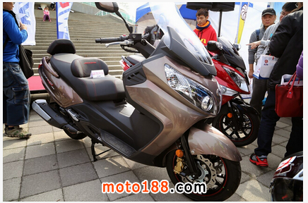 其實MAXSYM 600i 已經在車界流傳已久,在這幾年的米蘭車展中,也一直出現在SYM 的展區當中,去年也在歐洲上市開賣,這次展出實車顏色為全新的棕色,國外現行的車色也沒有此色,應該是專屬臺灣市場,外觀與MAXSYM 400i 幾近相同,座墊有紅線繡邊及MAXSYM 字樣。