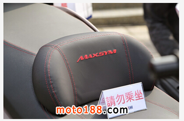 600cc的版本,靠背上繡有MAXSYM 紅色字樣。