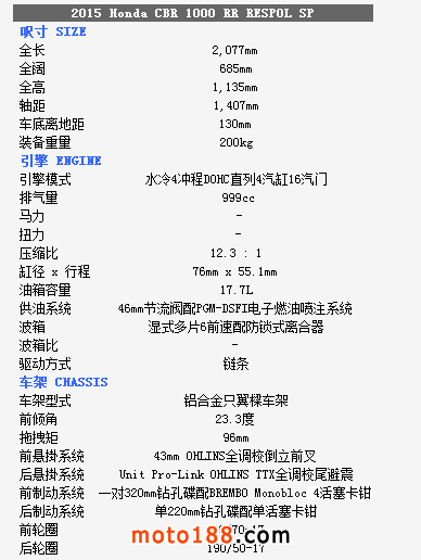 ●2015 HONDA CBR1000RR REPSOL SP套用相同的RESPOL拉花、前后橙色輪框。