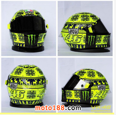 每頂羅西款AGV頭盔都有其自身寓意,當記者就此事問及羅西時,喜歡搞怪的羅西沒有作答,而是拿出了一頂與頭盔同款花色的毛線編織帽戴在了頭上,而后的回答更是讓在場的人“大跌眼鏡”。“這是圣誕節(jié)的圖案啊!雪花、麋鹿和樹!還有我的小龜!你們看不到嗎?我要佩戴它去找尋我的第十個賽季冠軍!”