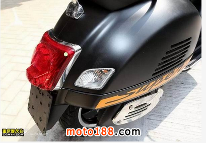 GTS 300 Super Sport是Vespa之中的跑車,除了是Vespa四沖程水冷機器鐵殼綿羊最大排氣量之外,還配有象徵高性能的裝飾:例如車頭有Vespa S大字凸章,還有紅色頭擔避震彈簧,具預載調較功能的雙筒尾避震,合金輪圈是銀圈黑柱 two-tone 款式。此外,頭尾碟剎,車頭柜桶位置還有SuperSport凸章。