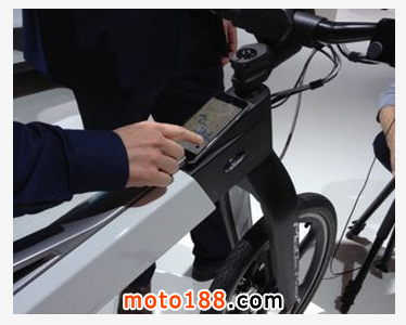 如最上面的照片所示,智慧型電動機車必須搭配智慧型手機才能驅動。透過低耗電藍牙技術將智慧型手機與智慧型電動機車連線,再將手機置于鋁製上管框架的凹槽內,就可以應用在諸多功能上,包括利用內建的傳感器,提醒騎士后方有車輛靠近,當然也能運用 Google Map、GPS 衛星導航…等功能;不光如此,若手機有簡訊或來電,也能透過電動機車把手以振動提示騎士。至于速度部份,智慧型電動機車內建 9AH 電池,最高可提供 25km/hr速度。