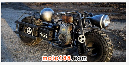 該款車由電腦游戲 Fallout 3 演變而來,號稱世界末日之戰車!一位名叫 Chris Riffel 的高中生某天突發奇想,從上述游戲中獲得靈感,在其朋友和老師們的協助下最終完成了 Fallout 3 現實版的摩托車的設計和制造。制造和組裝過程完全 DIY,自己動手切割和焊接鋼架,發動機則由報廢件改造而成。