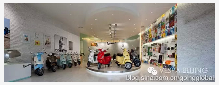 Vespa 踏板摩托已經從一個機車品牌上升到了一個文化符號,在都市創意群體的心目中占據著一個特殊的位置。為了迎合這種全球化的消費文化訴求,Vespa在零售領 域積極擴張,比如曼谷這家“Vespa 走廊”品牌店以及未來的許多專賣店。這家店由名為“超級機器”的機構所設計與運營,整家店內標志性的Vespa元素無處不在,從大量的迷你玩具模型展示到 主題墻上那些經典的廣告海報。這基本上就是一場關于Vespa的慶典,強大的時尚潮流足以把一個新人車手帶入品牌文化的社區徜徉。