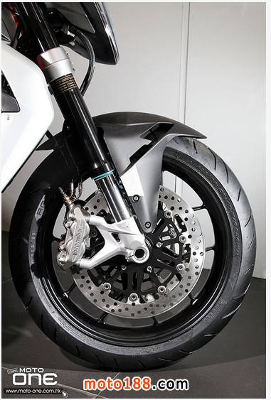 ●前掣動是雙320mm浮動碟配Brembo放射式四活塞卡鉗,一對擁有全調校的MARZOCCHI 43mm倒立前叉。