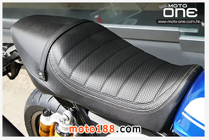 以1,300c.c.級別車子只配14.5公升油箱,聽下去不太合比例,就連一部 400c.c.級的油箱容量也不止此數,但新設計的油缸目的是讓車子看來更瀟灑之餘,更有效提高車子的靈活性,不失跑車的身份。她的旁冚正好是一塊不折不 扣的號碼牌,加上全新設計啞黑4出2出1排氣喉,還有那貌似單座位的設計,令她更是入形入格。請勿忽視那古典形燈翼???
