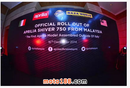 Apirlia Shiver 750 CKD版本在馬來西亞的推出,對馬來西亞來說具有重要意義。從2015年開始,它是除意大利以外第一個(gè)被指定可在當(dāng)?shù)亟M裝Apirlia Shiver 750的國家,組裝地在NAZA生產(chǎn)基地的莎阿南。此次發(fā)布會(huì)的看點(diǎn)也在于車子的技術(shù)創(chuàng)新,該技術(shù)創(chuàng)新使得Shiver成為同類別車?yán)锩娴馁摺?2015年款的車配備了第二代創(chuàng)新的Ride-by-Wire系統(tǒng)和改進(jìn)的人體工程學(xué)設(shè)計(jì)的車把和車座。新產(chǎn)品的推出使得Aprilia品牌在馬來西亞的 影響加強(qiáng)(馬來西亞是一個(gè)快速發(fā)展的國家,有大約30萬居民,是東南亞最富有的國家之一),并指定NAZA集團(tuán)作為馬來西亞唯一的一個(gè)Apirlia進(jìn)口 商和分銷商。