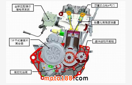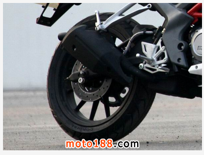 前液壓剎車手柄,采用國外高檔摩托車前制動上泵,專門匹配設計,更人性化的設計,前制動手柄有四個檔位調節張開寬度,適應不同大小手型,更安全可靠。前制動卡鉗采用和國外高檔大排量摩托車一樣的對置四缸設計,只型體稍小,專門匹配設計,制動更平穩,剎車片磨損過中會自動跟進,減少了手動調節間隙的需要。