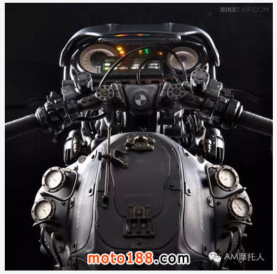 再加上啞光灰涂裝、油箱上黃銅制作的儀表及鉚釘件等等使其顯露出濃濃的蒸汽朋克風格。當然這家伙這絕非只是徒有其表的show bike,搭載有加強過的1649cc直六引擎使得這頭巨獸擁有強大的馬力。