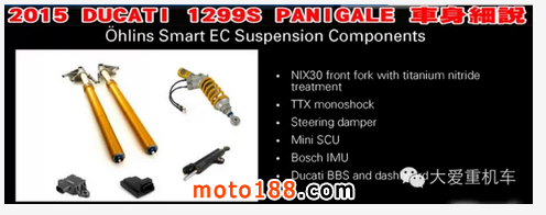 我試的是s版,有全新的電子避震,當(dāng)然是Ohlins的NIX30和TTX,steering damper是Sachs,也是電子控制的,分了兩種模式,1是fixed,和以前1199s一樣續(xù)格在表板調(diào)damping,而第二種是比較先進(jìn)的 event based的,set了這個(gè)后,ecu會(huì)按道路情況例如彎道或直路,去調(diào)整油壓,駕駛者只需按自己的喜好來(lái)調(diào)soft,harder 或hardest如此類推。