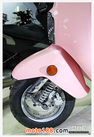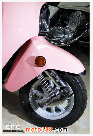 粉紅色迷人車身的 SACHS SKY 150,明顯針對女騎士而設計,加上復古的意式綿羊的典雅外型,觀感份外可愛迷人。