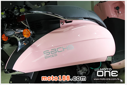 核心提示: 粉紅色迷人車身的 SACHS SKY 150,明顯針對女騎士而設計,加上復古的意式綿羊的典雅外型,觀感份外可愛迷人。 SACHS是德國