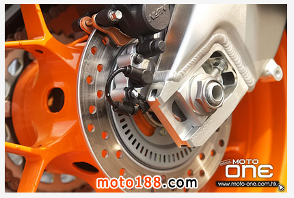 ●整套前后獨立制動系統(tǒng),行車電腦根據(jù)騎士施加的制動力及車速等等,適當?shù)靥峁┭u動力及可避免鎖死車轆。