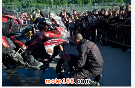 2011年5月28日,一個對于保羅和DUCATI來說意義重大的日子。在經過長達一年的長途旅行之后,保羅終于回到了這次環球旅行的目的地——Imola。這一天,成百上千的人們見證了勇士歸來的這一刻,杜卡迪CEO Gabriele Del Torchio親自歡迎這位勇敢的騎士歸來。從那一刻起保羅的MULTISTRADA 1200 “Lidia”將會和無數具有傳奇色彩的DUCATI一起靜靜的在位于DUCATI工廠的博物館里述說著她和保羅之間的故事!