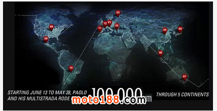 “I’m sure that wherever I go, I will find DOC membersthere to support me.”從保羅踏上旅途的那一刻開始,世界各地的DOC俱樂部成員就成為了他最堅實的后盾。俄羅斯,中國,日本,美國,墨西哥,南美洲……一長串的國家都留下了保羅和他的MULTISTRADA的足跡。無論保羅身處何方,DOC的成員總是伴隨在保羅的左右。