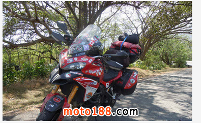“Ihave not a bike, I have a Ducati.” 保羅總這么驕傲的向人們宣告著他所摯愛的DUCATI。出生在意大利南部最大城市Naples的保羅,一直以來都有一個常人看來近乎瘋狂的夢想:騎著Ducati完成一次屬于自己的環球旅行。最終,杜卡迪幫他實現了這個夢想,他得到了一輛被他稱為“Lidia”的DUCATI MULTISTRADA 1200s。“Lidia”這樣一個充滿柔美氣質的名字,充分的表達了保羅對DUCATI的熱愛,對他來說,這不僅僅是一臺DUCATI那么簡單,一位貼心而又可靠的伴侶,陪伴他走完10萬公里的漫長旅途。