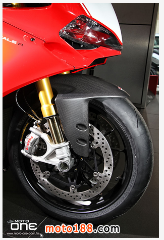 而採用這些貴金屬製造的部件,好處是能抵受更高溫及壓力,意味著能夠從引擎榨取更多馬 力及轉數,再者Panigale R版的引擎是由DUCATI負責Motogp及WSBK賽車部門CORSE重新調校,使2015 Panigale R輸出達205hp馬力,與更大排氣的1299看齊,比2013 Panigale R版還要多10hp馬力,轉數也由12,000rpm增至12,500rpm。其次是裝備重量由舊款R版的189kg減至184kg,其中原因是2015 版採用全梳鈦合金制的蝎子排氣管。