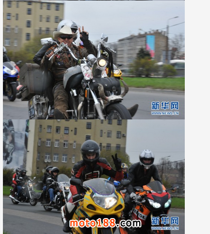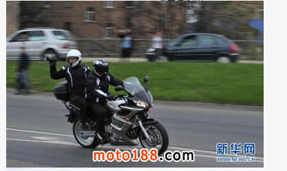 26日, 拉脫維亞摩托車愛好者在拉首都里加街頭駕車巡游。當天,拉脫維亞首都里加舉辦了一年一度的摩托車巡游活動,慶祝又一個摩托車季的到來。拉脫維亞有大量的摩托車愛好者,但是這里冬季寒冷多雪,他們只能把心愛的摩托車收藏起來,而到了春暖花開的時候,再把愛車打扮起來進行巡游,慶祝摩托車季的到來。此次活動由拉脫維亞摩托車愛好者協會舉辦,共有30多個摩托車俱樂部的4000多輛摩托參加了巡游活動。