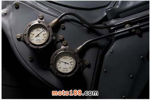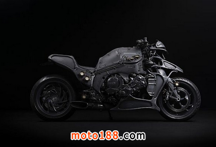 Kawakita的摩托車被稱為“Juggernaut”(重型卡車),它就像是Mad Max金屬和小說家Jules Verne無限想象力的綜合體,整車好似來自反烏托邦主義的未來城市,采用了軍用風格和黑灰色的外觀涂裝。