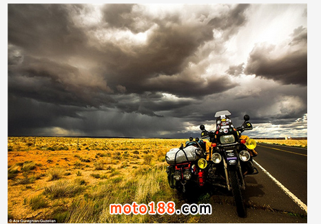 他們騎摩托車到過美國西部和中部的大部分地方,期間也碰到了暴風和大雪。