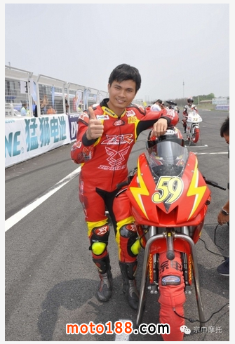 5月3日,2015全國摩托車公路賽南京站啟幕,宗申車隊正式開始了今年的衛(wèi)冕之路。在廠商杯國產(chǎn)250CC公開組兩輪資格賽中,宗申車隊老將何智鋒連續(xù)奪得第一,并拿下了南京站正式比賽第一回合的冠軍。
