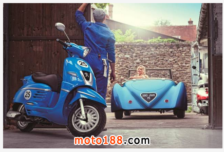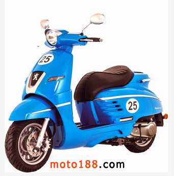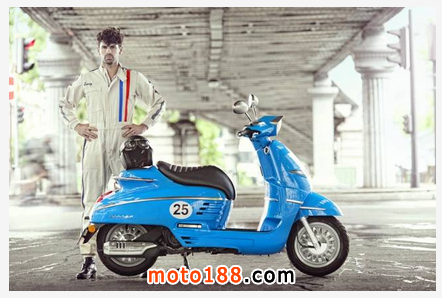 運動版車身顏色為運動韻味十足的愛琴海藍,配置單人運動型鞍座,車身有25號碼標貼圖樣。25號是對標致具有歷史紀念意義的冠軍戰車編號。