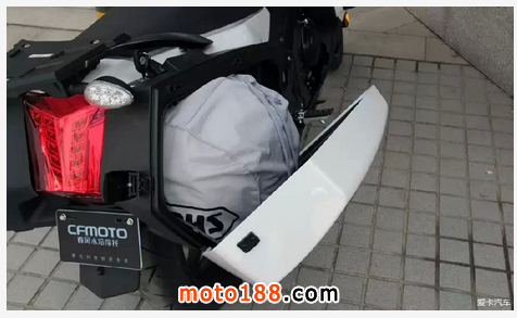 邊箱蓋打開的角度變小了,里面的東西不會撒得到處都是。箱子容積足夠大,放一頂全盔毫無壓力。