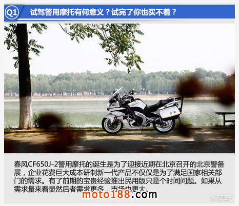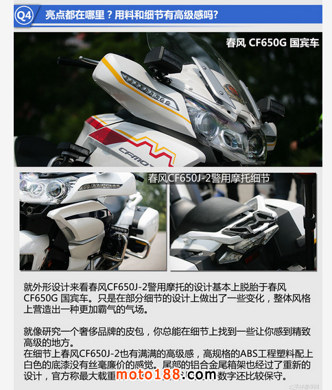 你心中一熱也想圓上自己的摩托夢。上網看看資料查查車發現動輒十幾萬元的價格讓那些進口的大貿車變得難以接近。預算有限是不是就買不了大排量摩托了呢?當然不是,我們今天的主角正式登場,它是來自春風的CF650J-2警用摩托。