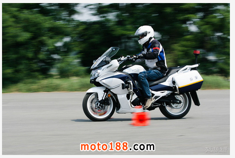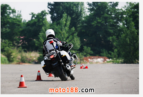由于重心分布相對合理,當你以較低的速度在樁桶之間做切換的時你會發現車輛的擺動并不明顯,你能完全控制重心的轉移和車輛的速度。這時你滿心歡喜覺得沒什么嗎,可以加速了,你猛給了半手油,摩托竄了出去,該向左轉了你發現車速太快控制不了,急剎車,壓手把,這時摩托壓了前面的樁桶,然后第二個。