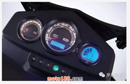 儀表時(shí)尚個(gè)性,左側(cè)表盤指示發(fā)動(dòng)機(jī)轉(zhuǎn)速,中間表盤指示時(shí)速,外圈公里(0-140)、內(nèi)圈英里(0-90),公里計(jì)數(shù),右側(cè)液晶表盤指示燃油箱油量,夜間的藍(lán)色背光易于識(shí)別。