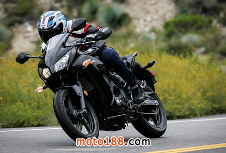 CBR300R的最佳狀態(tài)在6500轉(zhuǎn)到8500轉(zhuǎn)之間,期間,300R將為你表現(xiàn)出它最好的一面,流暢可靠的六速變速箱配備很輕的離合使你總能找到一個(gè)最佳點(diǎn),快速換擋只是一瞬間的事,即使你忘記減檔入彎,CBR300R仍然有足夠的動(dòng)力來(lái)挽救你的錯(cuò)誤。另一方面,CBR300R的排氣聲音讓人喜愛,這對(duì)于單缸機(jī)來(lái)說(shuō)有點(diǎn)意外。聲音轟鳴有力卻不嘈雜。