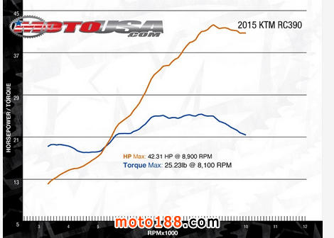 首先,375cc的發(fā)動(dòng)機(jī)的引擎是目前同級(jí)別中排量最大力量最強(qiáng)的。峰值期間,水冷單缸發(fā)動(dòng)機(jī)在8900轉(zhuǎn)的時(shí)候可以輸出42.31匹馬力和25.34磅— 英尺的扭矩,比排名第二的雅馬哈R3多出5磅-英尺。其從底部發(fā)出的轟鳴聲要強(qiáng)于三陽(yáng)、川崎和本田品牌的車型,與其他車型相比,KTM的那立竿見影的馬力輸出讓人滿意,其出彎速度和直線加速時(shí)間更令人難以抗拒。