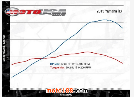 R3搭載了一臺(tái)321cc水冷雙缸發(fā)動(dòng)機(jī),在R25的引擎基礎(chǔ)上加大缸徑、強(qiáng)化了曲軸、調(diào)整了熱機(jī)部分的局部機(jī)構(gòu),與忍者300的62毫米比起來(lái)排量多出了25cc,不同的是,從油門到紅燈區(qū)的初始感受,雅馬哈在峰值時(shí)的表現(xiàn)更加努力,在10500轉(zhuǎn)的時(shí)候輸出最大馬力37.32匹,9200轉(zhuǎn)的時(shí)候最大扭矩20.24磅-英尺。