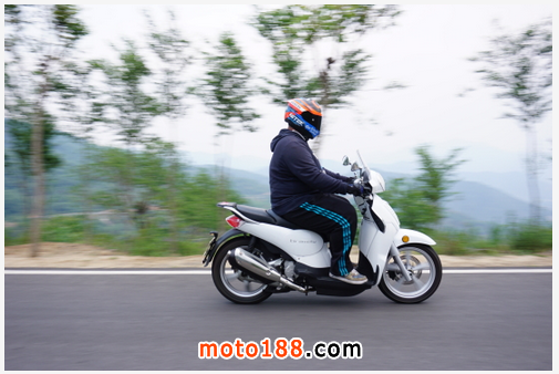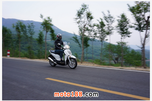 月月:對于一款踏板摩托來說,它的動力可以算得上非常強勁了,要提速有提速,要極速有極速,雖說我只試驗騎到100公里/小時,仍舊感覺它存有大把的動力。