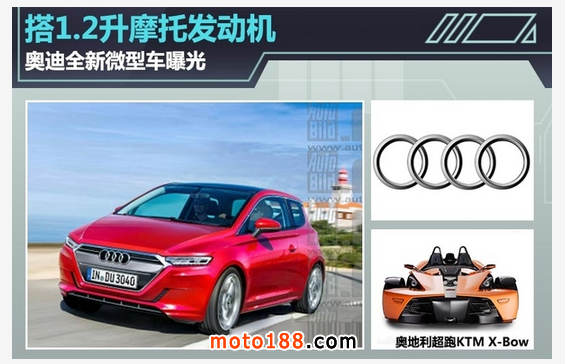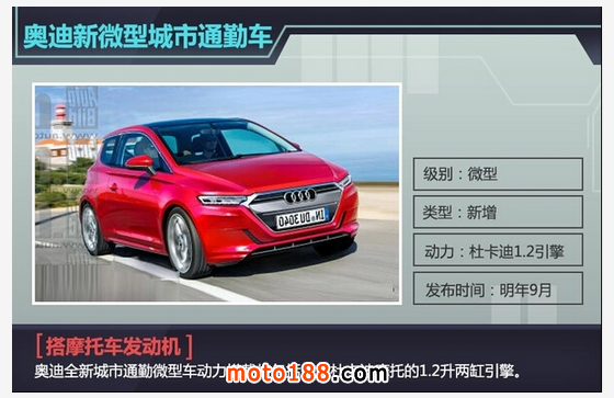 摩托車發(fā)動機(jī)搭載在汽車上?如此“奇葩”組合在一起會產(chǎn)生什么化學(xué)效應(yīng)呢?這個現(xiàn)象在奧迪身上實(shí)現(xiàn)了。日前,網(wǎng)通社從芬蘭媒體worldcarfans獲悉,奧迪未來新動向是將推出一款全新城市通勤微型車,競爭對手瞄準(zhǔn)第二代大眾up以及斯柯達(dá)Citigo,新車動力搭載將包括來自杜卡迪摩托的1.2升兩缸引擎,新車預(yù)計(jì)將在明年法蘭克福國際車展正式發(fā)布。