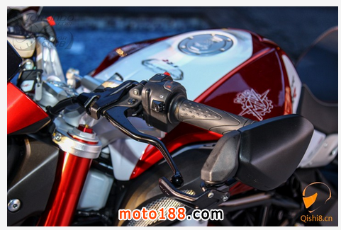 金屬油箱蓋上有著MV AGUSTA的LOGO,看起來質(zhì)感滿點