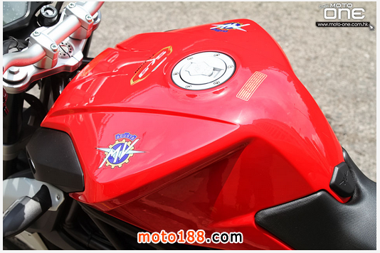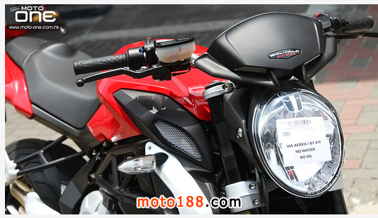 由于珍珠白色已經(jīng)交到車主手中,所以今次只拍攝紅色的2015 MV Agusta Brutale 675,與往年2014款比較,最大分別在于座位下的車身由紅銀改為黑紅色,令2015年款的紅色部份更為突出。另外,新款采用更舒適軟屬的座位及油缸加入一顆防花的保護膠片,都是2015年改良的地方。