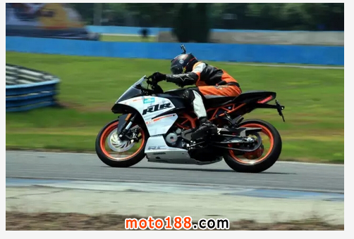 賽道試駕后倪巍點評KTM的RC390:在如今所有車廠都在跟風流線型外觀的時代,KTM依然堅持著自己傳統的切割面外觀設計風格。車頭的搭配顯現了KTM最新一代跑車的設計理念。使用了雙透鏡的前大燈和面積更大的導流罩有機玻璃。這種外觀極具個性,整車識別度非常高。RC390騎來特別輕盈,適合小型賽道使用。輪胎非常抓地,但后減震回彈阻尼有提高的空間。發動機的中低扭矩令人滿意,轉速7000r/min就達到了峰值。而且轉速超過這個區域后,發動機的高轉速區表現仍然從容。這款單缸發動機的設計非常適合賽道中的駕駛??赡_踏位置偏低,賽道使用時建議換裝升高腳踏。單缸車在高轉速區域傳導出的震動較大。超輕的自重,再加上超薄的車座和分體式低位車把,讓人很自然的呈現出了戰斗化得駕駛姿勢。駕駛中會感覺比同級別都市型跑車更激進。