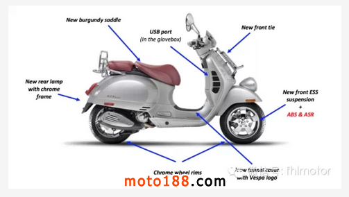 動力方面車架與發動機和GTS車系無異,USB接口插座同樣配備,而前減震采用全新的ESS懸掛系統,前后ABS&ASR系統也是標準配置。