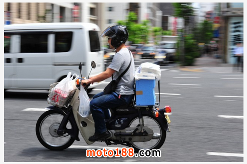東京的拉面店就像是美國的塔可鐘快餐到處都是,有過之而無不及,這真的是填飽肚子的最佳選擇,尤其是天冷的時候一碗熱乎的拉面瞬間讓顧客感到生活的美好。繁忙的工作也讓很多顧客選擇叫一份拉面外賣,拉面這種食物比西餐漢堡更加講究進食時間,時間稍久面的味道口感就完全不同了,那么如何才能將外面在最短的時間內(nèi)送到客戶手中?這家店給了一個答案——川崎ZX-14R,還有什么能比這個快?灼藍(lán)的排氣相當(dāng)酷。