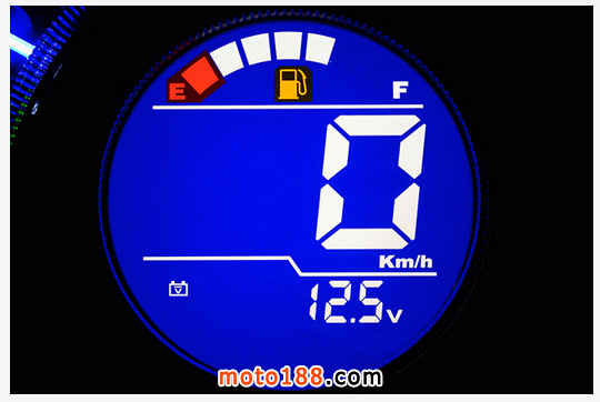 儀表板下方的多功能液晶顯示區(qū),除了基本的油量表與時(shí)速表顯示功能外,最底下的部分可以在總里程、單趟里程、機(jī)油使用里程、時(shí)間顯示、電壓表與數(shù)字式轉(zhuǎn)速表進(jìn)行切換,其中最后的數(shù)字式轉(zhuǎn)速表的單位為百位劃分,也就是盡會(huì)顯示百位數(shù)以上差異,如 1100rpm 1200rpm 1300rpm,并無法顯示至 1150rpm 1200rpm 1250rpm 這種較細(xì)的劃分方式。